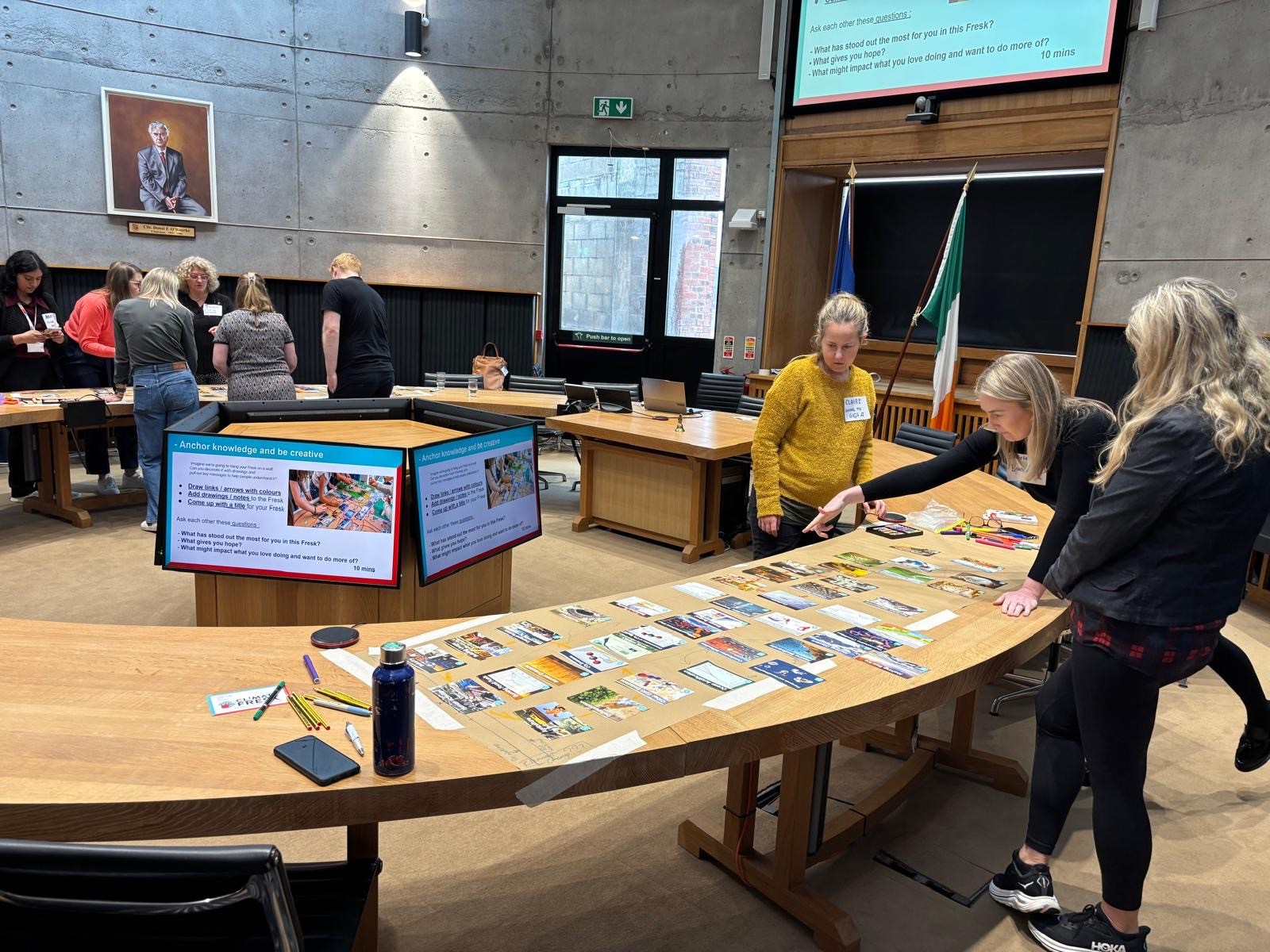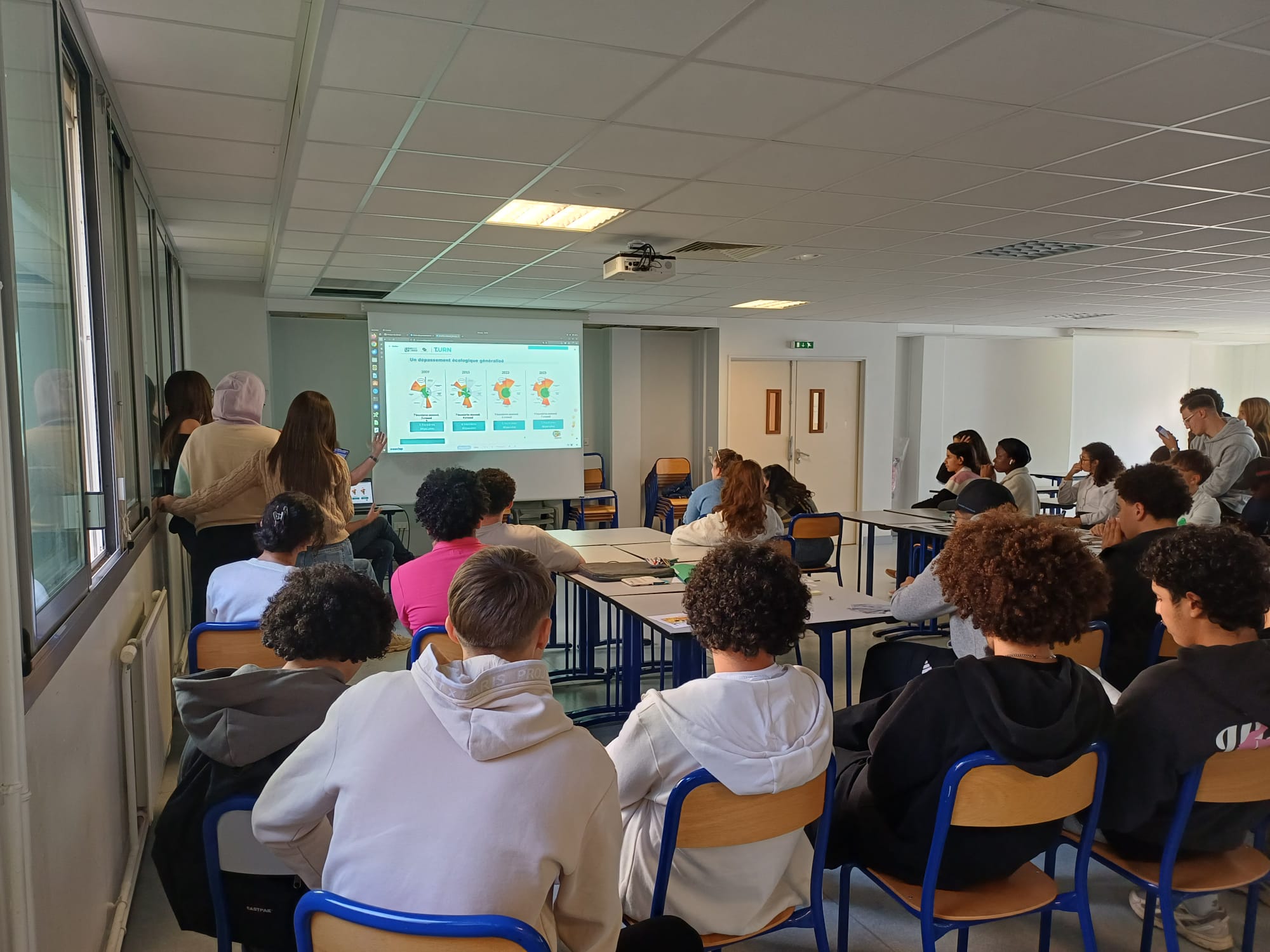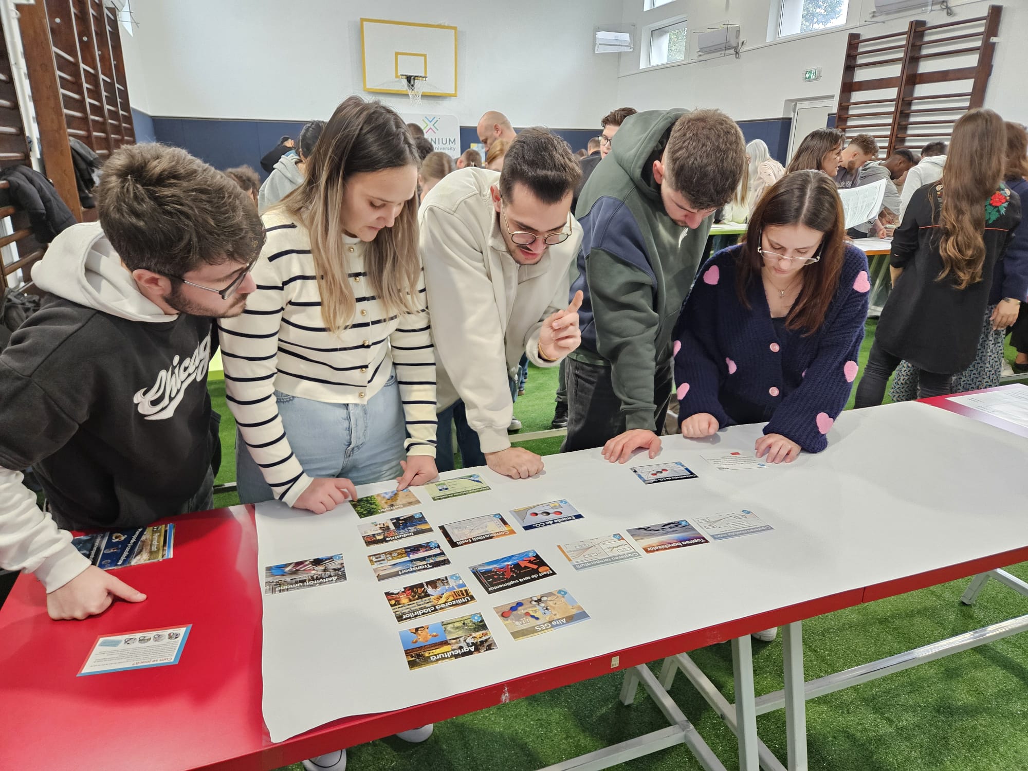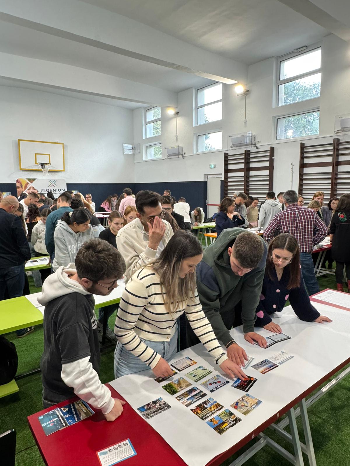 Par ailleurs, l’URN a pris part à une fresque du climat géante organisée par l’alliance INGENIUM dont l’Université fait partie. En même temps, dans plusieurs pays (Roumanie Allemagne, Suède, Irlande) de nombreux étudiants et personnels universitaires ont pris part à une même fresque du climat. À l’université allemande de Karlsruhe, c’est même 725 personnes qui ont participé à cet événement, en réalisant la plus grande fresque du climat jamais organisée en Allemagne. Du côté de Rouen, ce sont 136 membres dans la communauté universitaire qui se sont investis dans ce beau moment international autour des transitions socio-environnementales.