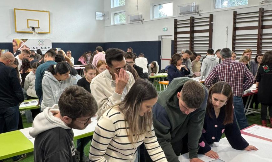 Par ailleurs, l’URN a pris part à une fresque du climat géante organisée par l’alliance INGENIUM dont l’Université fait partie. En même temps, dans plusieurs pays (Roumanie Allemagne, Suède, Irlande) de nombreux étudiants et personnels universitaires ont pris part à une même fresque du climat. À l’université allemande de Karlsruhe, c’est même 725 personnes qui ont participé à cet événement, en réalisant la plus grande fresque du climat jamais organisée en Allemagne. Du côté de Rouen, ce sont 136 membres dans la communauté universitaire qui se sont investis dans ce beau moment international autour des transitions socio-environnementales.