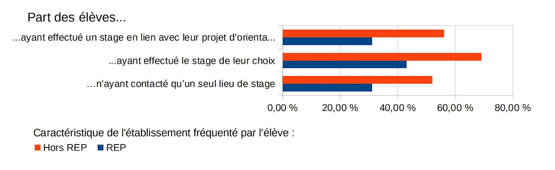 Surtout, les données recueillies montrent que les élèves sont inégalement préparés à la réalisation même de ce stage, de sorte que les apports de ce dernier ne sont pas les mêmes. Si ce stage est présenté dans les textes officiels comme une mesure destinée à aider les élèves à s’orienter, seule une petite moitié des élèves a effectué un stage en lien avec son projet d’orientation.