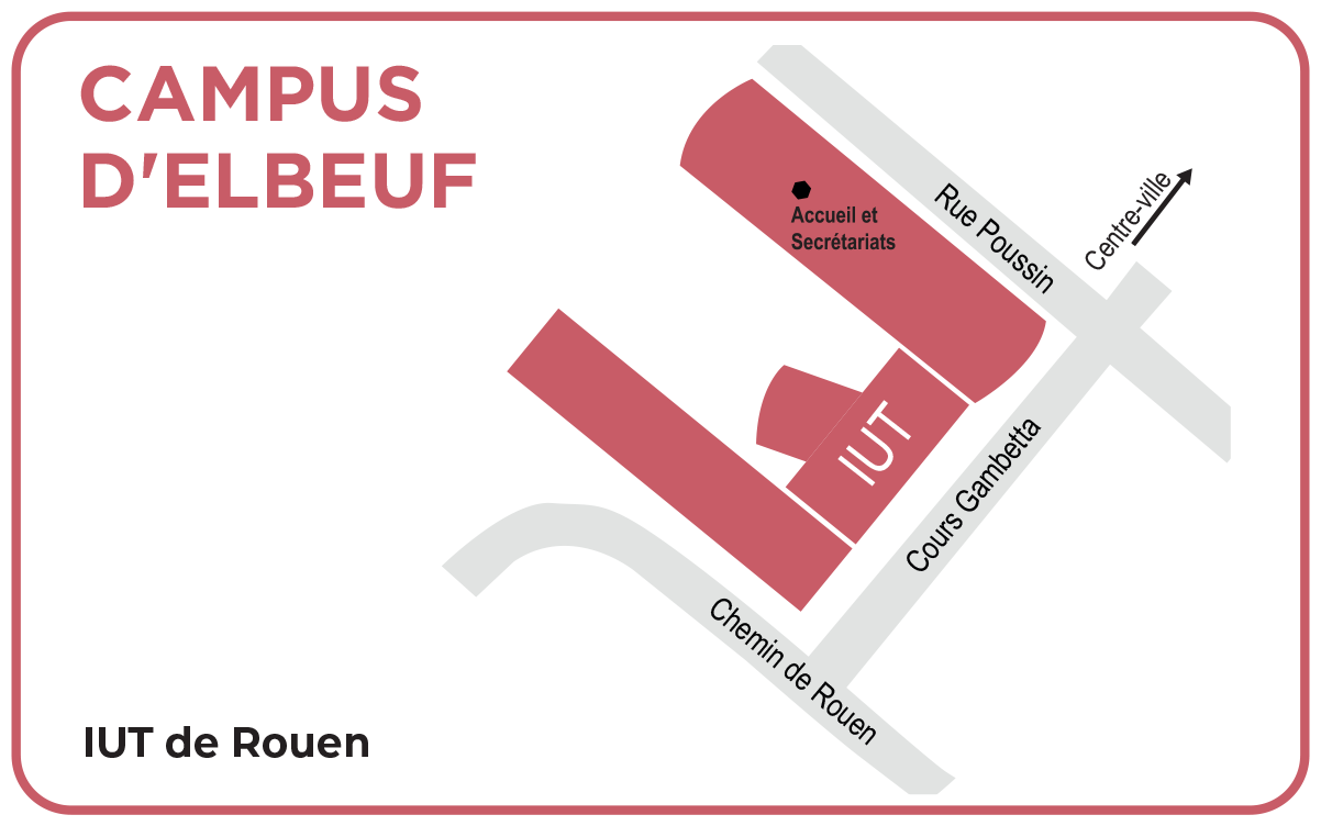 Le campus d’Elbeuf est idéalement situé, à 15 minutes de Rouen et à moins d’une heure de Paris. Il accueille une antenne de l’IUT de Rouen, et compte deux départements : Métiers du Multimédia et de l’Internet et Réseaux et Télécommunications.