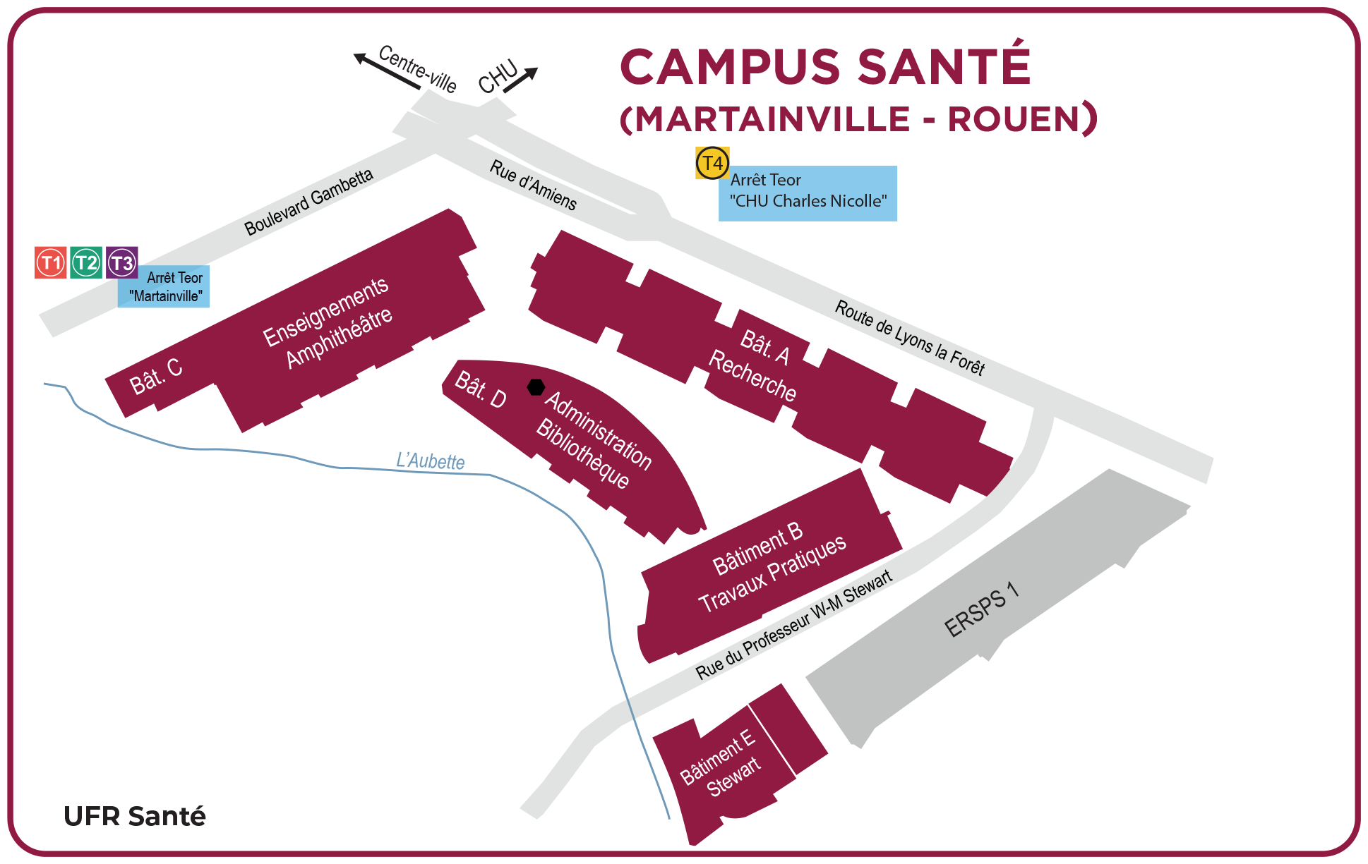C’est en 1999 que l’université de Rouen Normandie, en partenariat avec la Région et la ville de Rouen, inaugure cet ensemble universitaire. Le campus Santé, proche du Centre hospitalier universitaire Charles Nicolle à Rouen, abrite l’UFR Santé sur une surface de 38 000 m². En centre-ville, facile d’accès par les autoroutes vers Paris et Amiens, ou par les transports en commun, cette UFR accueille 3 500 étudiants (tous cycles confondus). Depuis novembre 2019, l’Université et ses partenaires, le CHU de Rouen et le Centre Henri Becquerel, se sont associés dans le cadre du Campus Santé Rouen Normandie, pour développer les synergies en matière d’enseignement, de recherche, de transfert économique et de soins à la population, tout en favorisant l’émulation dans un cadre de vie agréable.